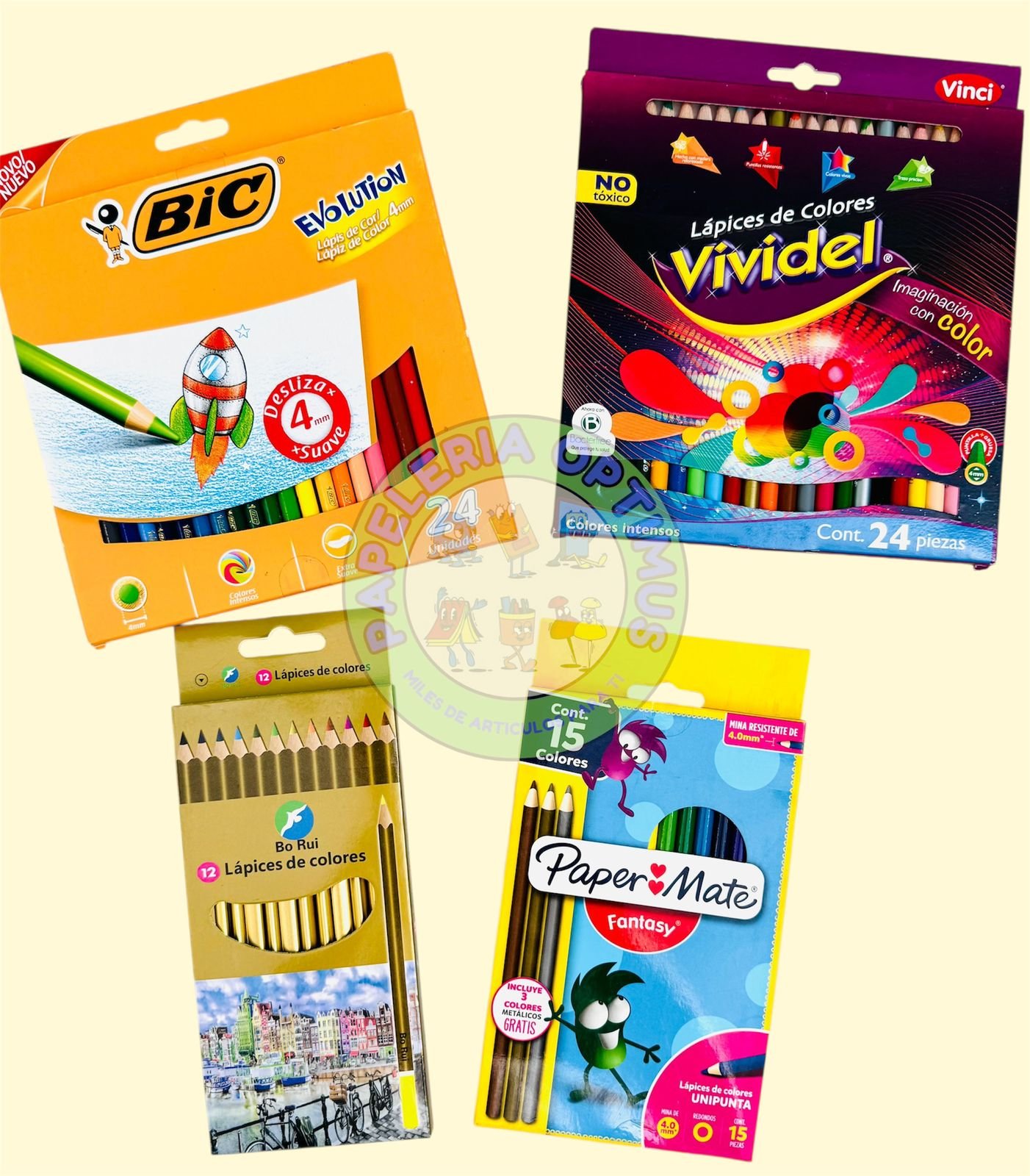Colores de variedad de marcas como Bic, Paper Mate, Vividel, etc.