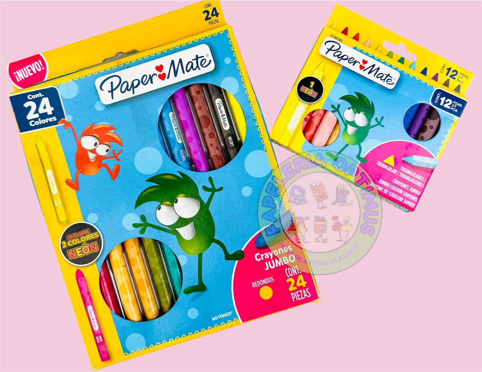 Caja de 12 ó 24 crayones de forma delgada o gruesa.
