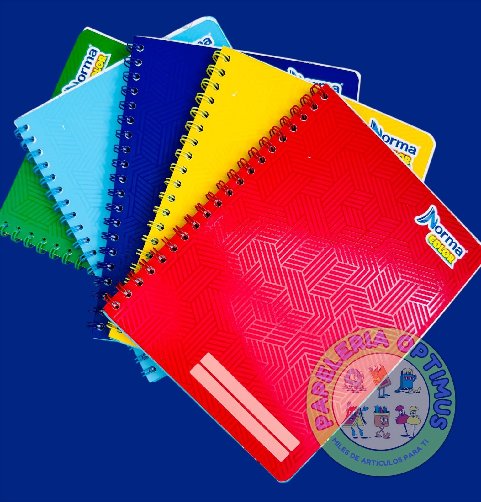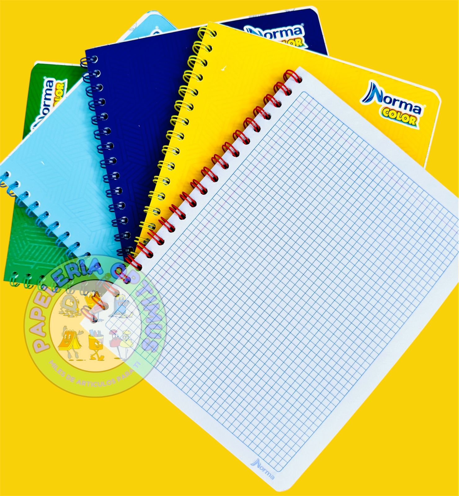 Libreta profesional Norma 100 hojas pasta semi-rígida reforzada con doble espiral en varios colores.